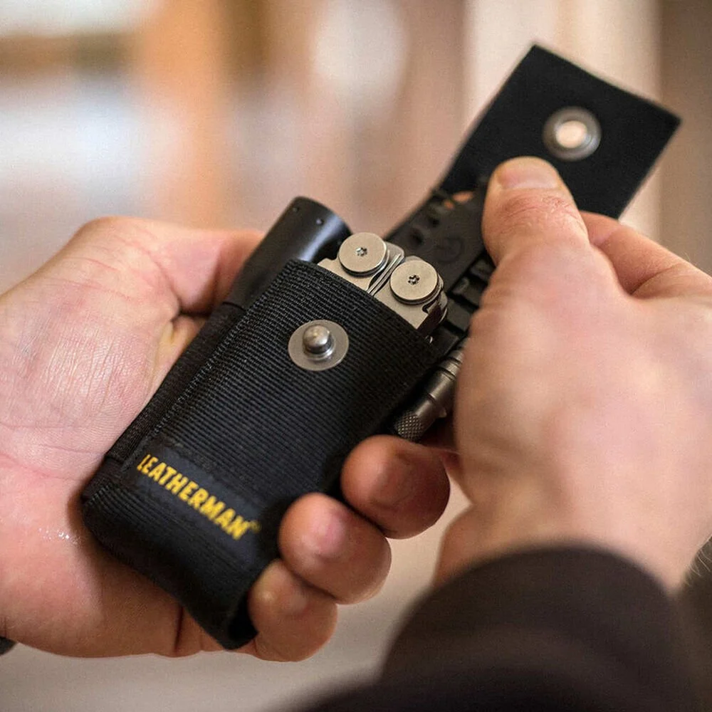Multi-tool’unuzu yeniden tasarlanmış bu Naylon Kılıflarla koruyun. Her ayrıntı, kılıfın uzun ömürlü, güvenilir ve kullanımı kolay olmasını sağlamak üzere özenle düşünülmüştür. Yüksek kaliteli metal perçinli düğme sıkıca kapanır ve aracınızı güvenli bir şekilde tutar. Kılıf, dayanıklı balistik naylon ve elastik malzemeden üretilmiştir; güçlendirilmiş dikişler sayesinde erişim ve uyum daha da geliştirilmiştir. Bu Naylon Kılıfın üzerinde Bit Kiti, Bit Uzatıcı ve küçük bir el feneri ya da kalem tipi işaretleyici taşımak için ek cepler bulunur. Taşınan aksesuarlara bağlı olarak genel uyum değişiklik gösterebilir.